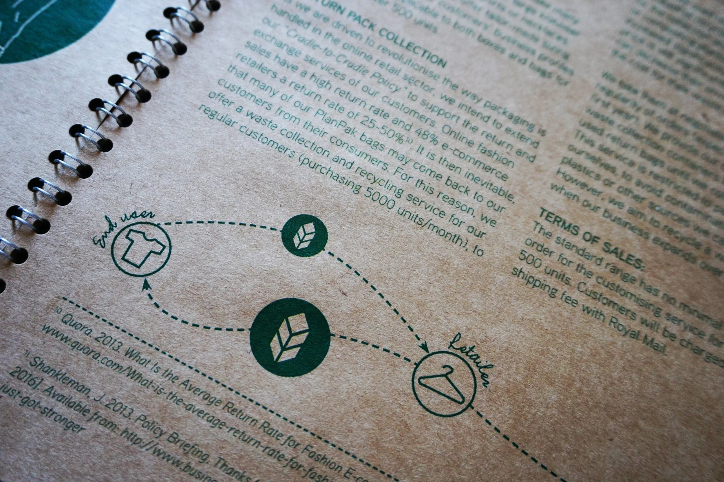 For the module of Entrepreneurship, our task was to form a company and create a business plan. Another student and I decided to create a business plan for an environmentally friendly packaging company for online fashion retailers. We wrote the business plan together, and I designed the layout and the logo.