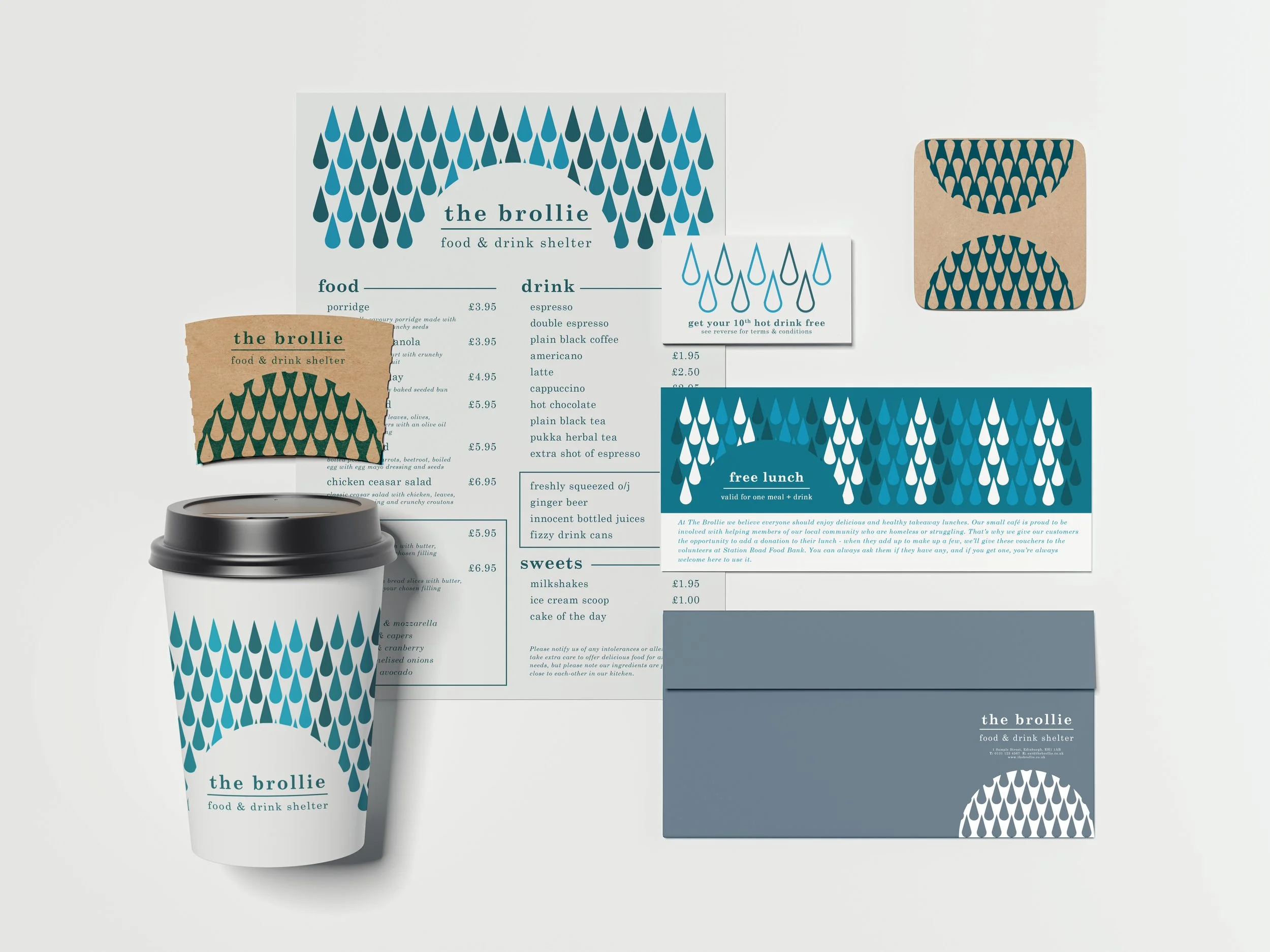 I used an inverted logo on a raindrop background which lent itself to a variety of interesting shapes to play with throughout the branding language.