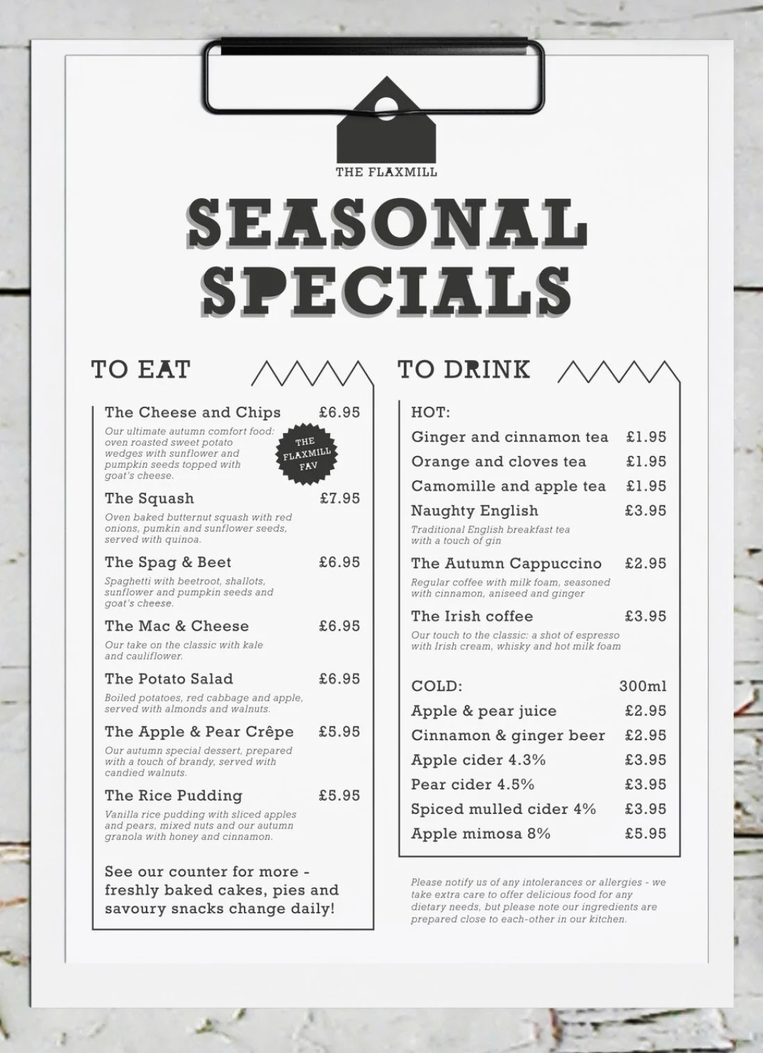 The Flaxmill was also created for the packaging company offering branding on their environmentally friendly materials. The brand identity of The Flaxmill relates to the built environment: the café is part of a disused flax mill building in Fife, with very distinctive shapes and roofing elements.