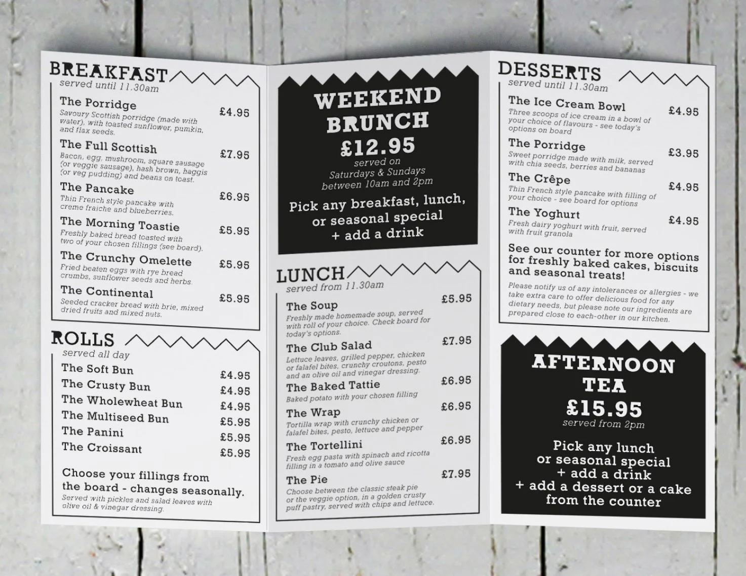 I wanted to compliment it with a logo and an industrial-looking typeface that is easy to recreate and can be edited and printed on small office equipment too. I considered the benefits of simplicity for the packaging and menu designs, and kept a singoe-colour, cost-efficient printing in mind too.