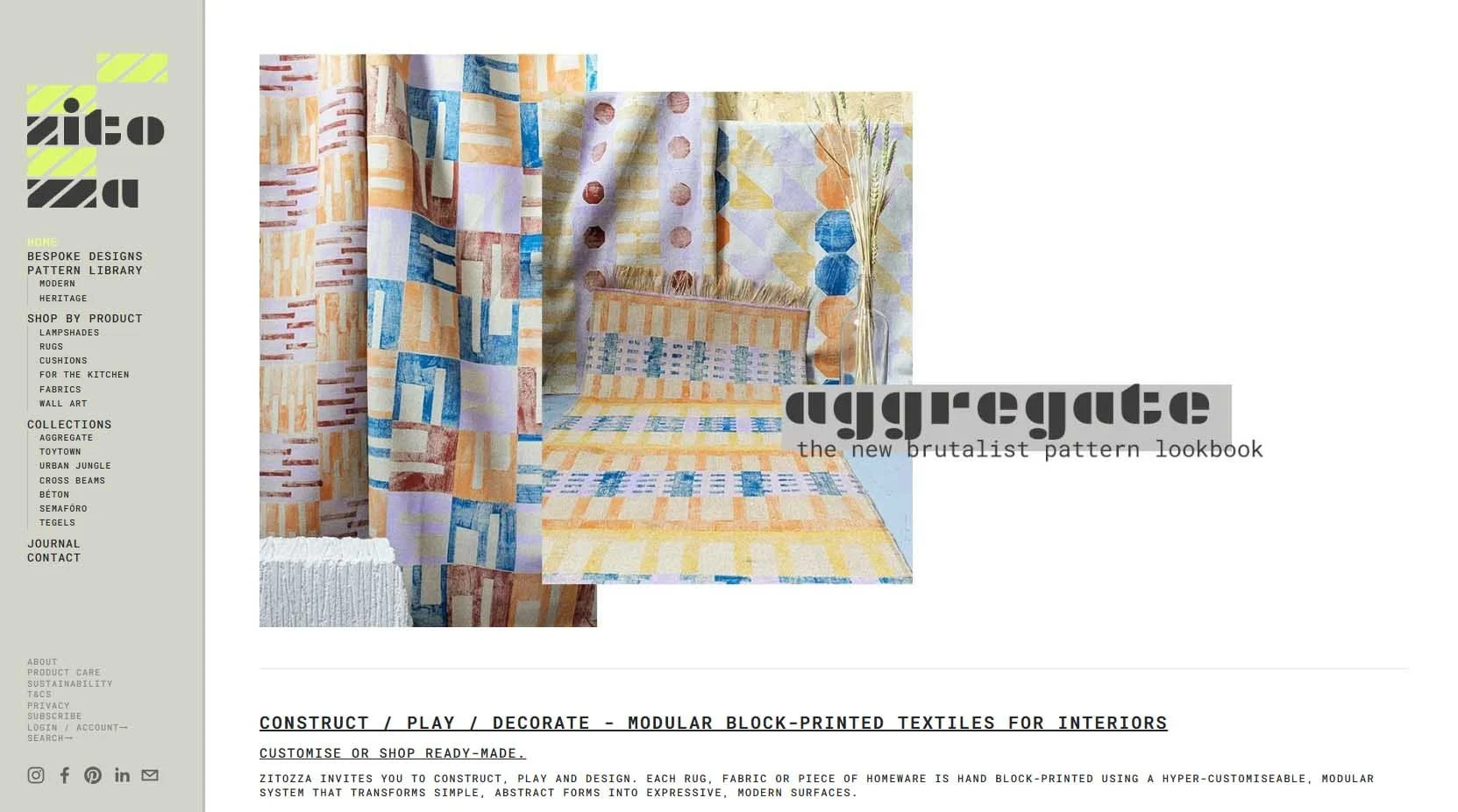 Founded at the intersection of graphic and textile design, Zitozza is a venture in modularity. The brand utilizes a custom-engineered block-printing system—a tileset of machine-cut, interchangeable blocks that allow for infinite pattern combinations on sustainable, tactile fabrics.